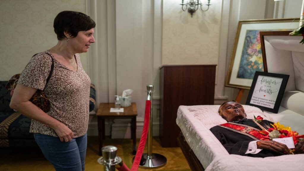 “Estamos haciendo lo correcto, pero va a ser agridulce”, recalcó. El cadáver ha permanecido tétricamente en un ataúd abierto durante casi toda su estancia en la funeraria.