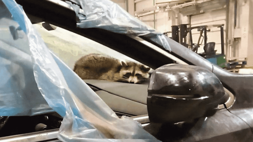 El mapache fue descubierto por oficiales de aduana en Grondo, una ciudad al oeste de Bielorrusia, mientras descansaba en el panel frontal de uno de los vehículos.